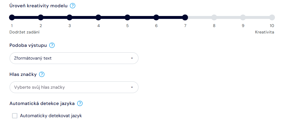 Je třeba počítat s tím, že ne všechny parametry jsou dostupné u všech funkcí. Pokud si ale například změníte úroveň kreativity v chatu, při otevření asistenta uvidíte tuto hodnotu nastavenou také. Vše tedy funguje propojeně a dává vám jednotný uživatelský zážitek.